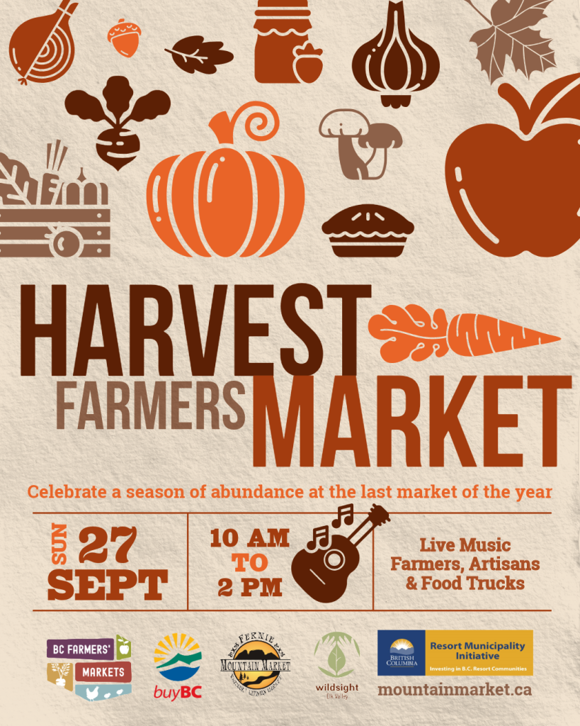 This new Harvest Market event celebrates Fernie with amazing local artisans, community groups, live local music & locally grown food. This is a special community event supported by the City of Fernie Resort Municipality Initiative.